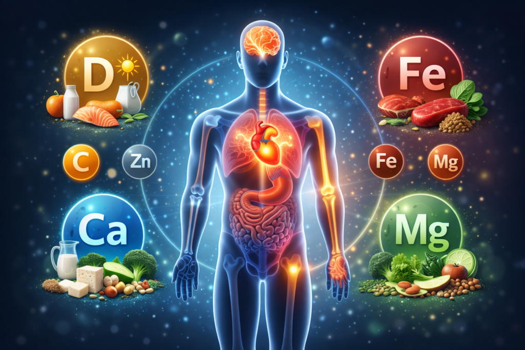 Vitamin D — Essential for bone strength and immune modulation. Sources: fortified dairy products, egg yolks, and adequate sunlight exposure.